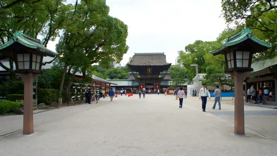 福岡市営地下鉄箱崎線「千代県庁口駅」から徒歩5分、または「馬出九大病院前駅」から徒歩7分です。JR鹿児島本線「吉塚駅」からは徒歩8分です。大祭期間中は周辺道路で交通規制が実施されるため、公共交通機関の利用が推奨されます。